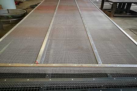 3、安裝篩網(wǎng)繃網(wǎng)的方式不恰當(dāng),有時候篩網(wǎng)繃網(wǎng)方式不對直接影響篩網(wǎng)的使用壽命,如篩網(wǎng)繃網(wǎng)過松不僅會造成篩分精度不高,還會造成篩網(wǎng)脫絲,篩網(wǎng)出現(xiàn)破損,篩網(wǎng)繃的過緊,也會造成中間的篩網(wǎng)破損。