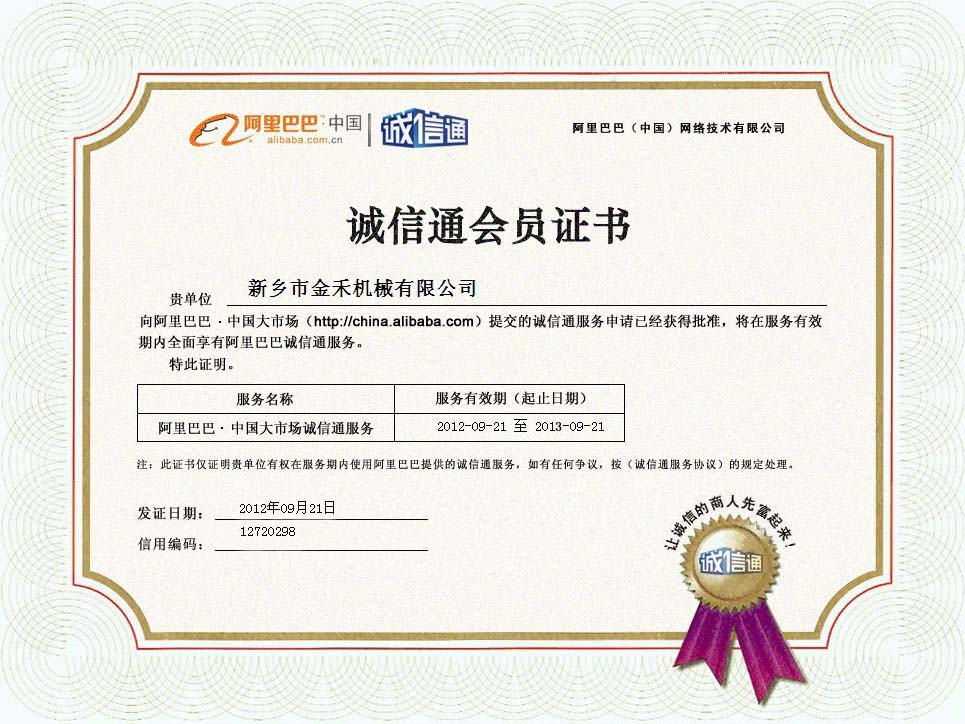 阿里巴巴誠信通證書